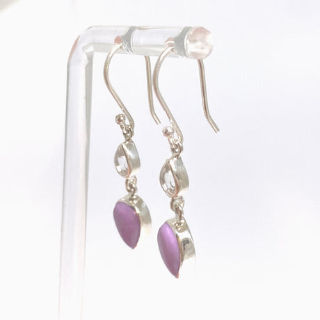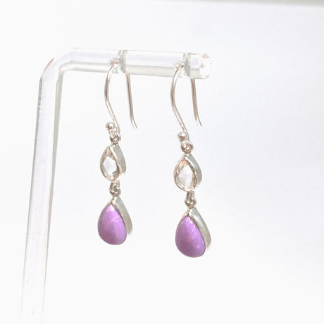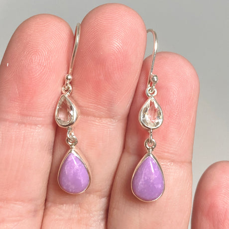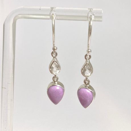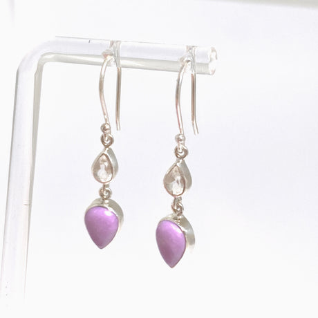 Phosphosiderite Teardrop Cabochon with Clear Quartz Accent Stone Earrings BTE-04