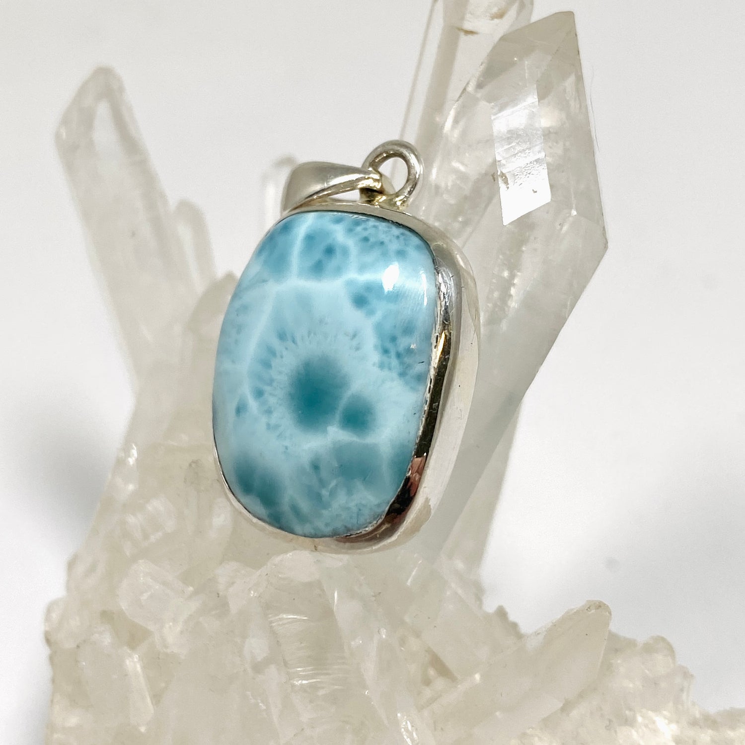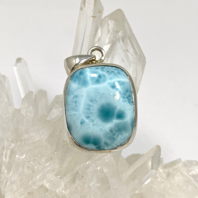 Set in 925 sterling silver, this Larimar Rectangular Cabochon Pendant features a soft blue stone with subtle white marbling. Larimar supports emotional clarity, calmness, and open communication.