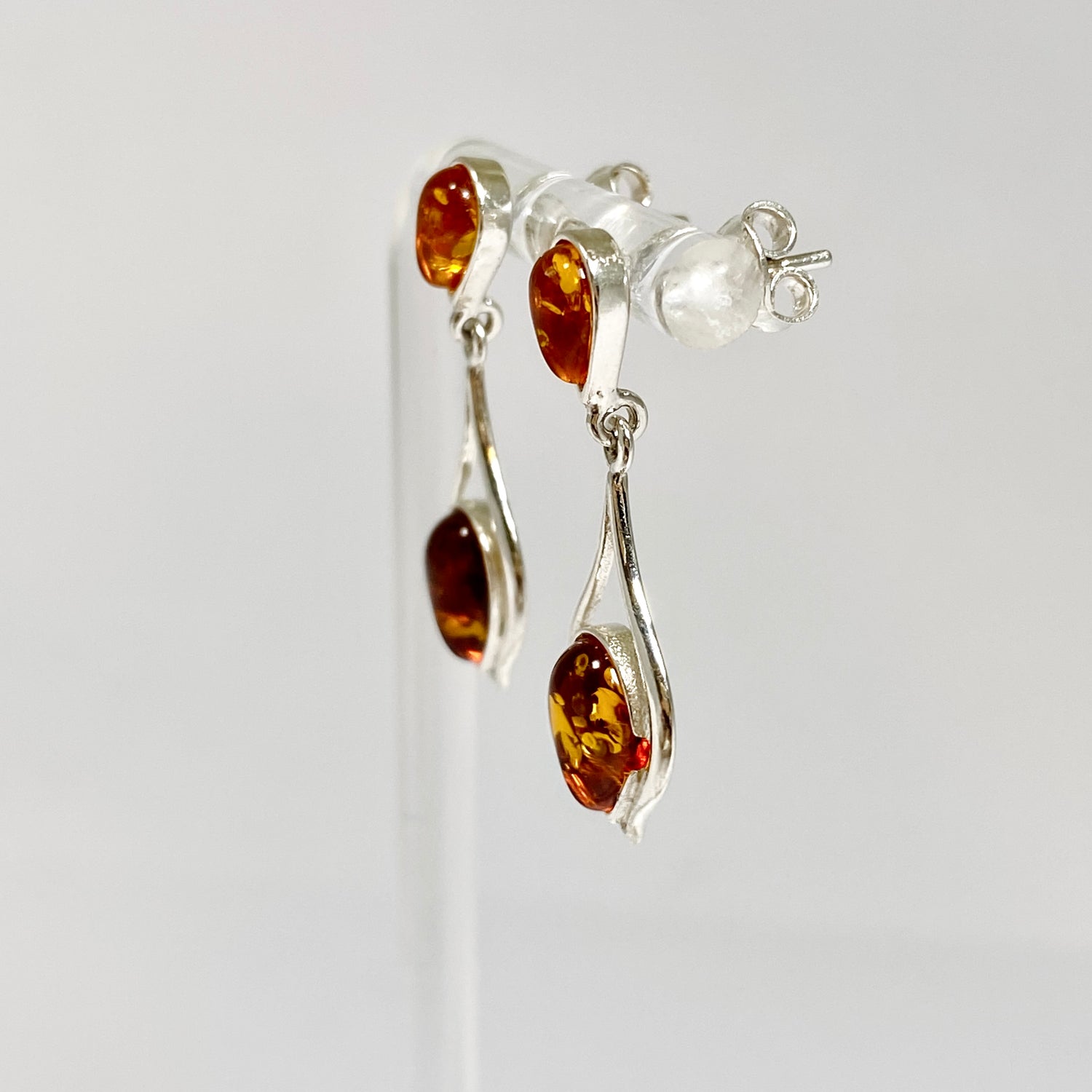 Baltic Cognac Amber Cabochon Multi-stone Drop Stud Earrings AMB317