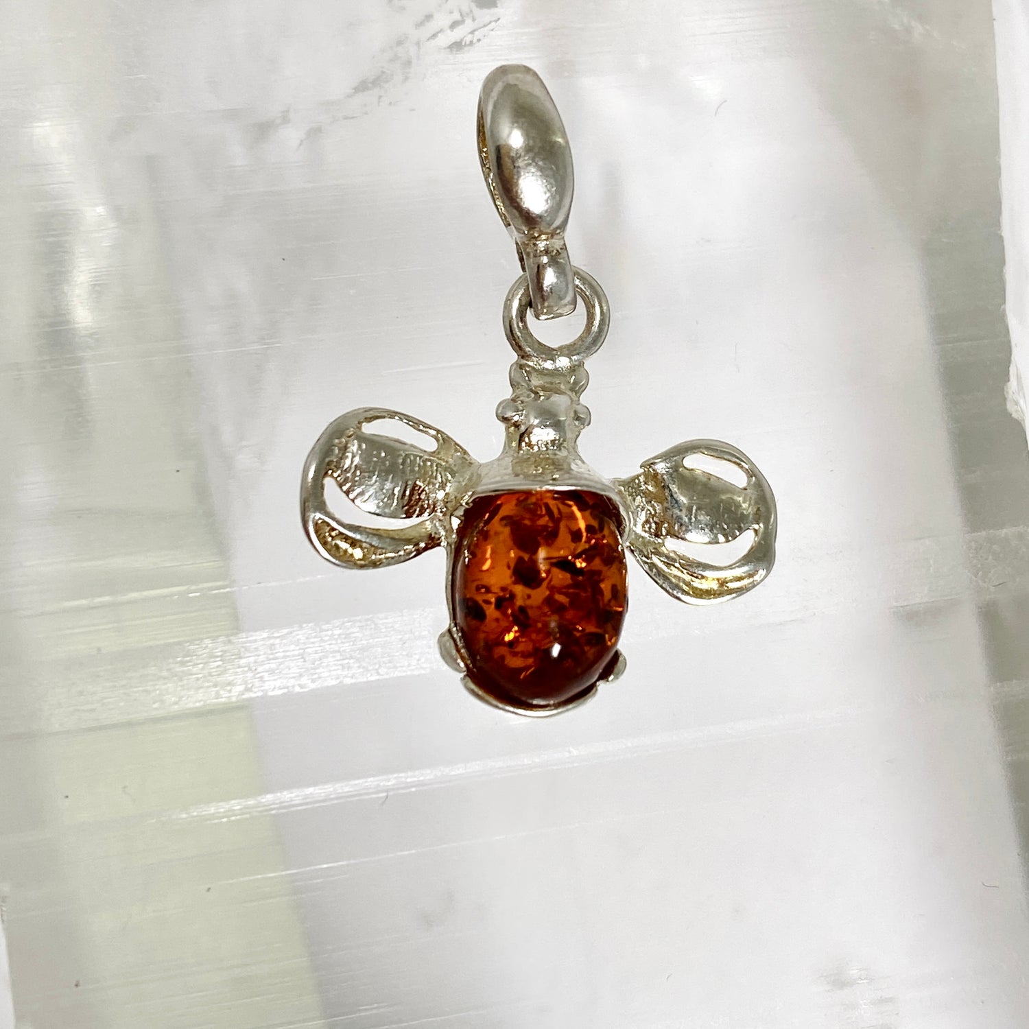 Baltic Cognac Amber Oval Cabochon Bee Pendant AMB347