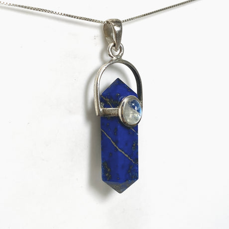 Lapis Lazuli Double Point Pendant with Moonstone Accent Stone PPGJ1231