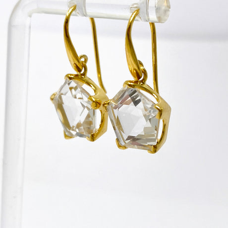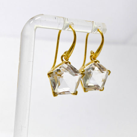 Clear Quartz Pentagon Faceted Star Gold Plated Claw Set Drop Earrings PEGJ372