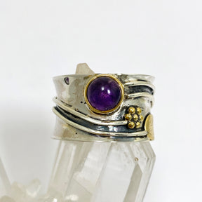 This Amethyst cabochon ring blends calming crystal energy with vintage-inspired botanical brass detailing. Set in sterling silver, Amethyst supports clarity, calm and spiritual connection – a perfect match for your everyday balance. Also available in other stones.