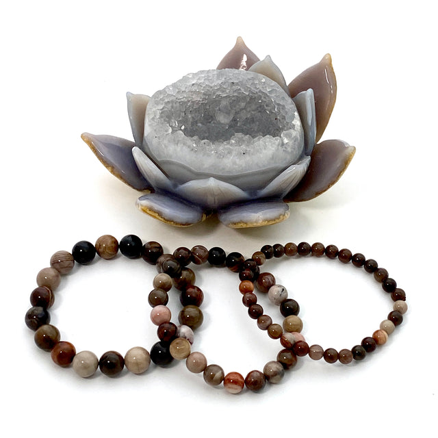 Beautiful quality petrified wood stretch bracelets! We have several different stone types and bead sizes, so please choose your desired style and size from the drop down menu.