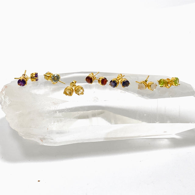 Small yet sparkling, these gold-plated gemstone studs are perfect for everyday wear. Available in a variety of stones, each adds a personal touch of colour and energy.