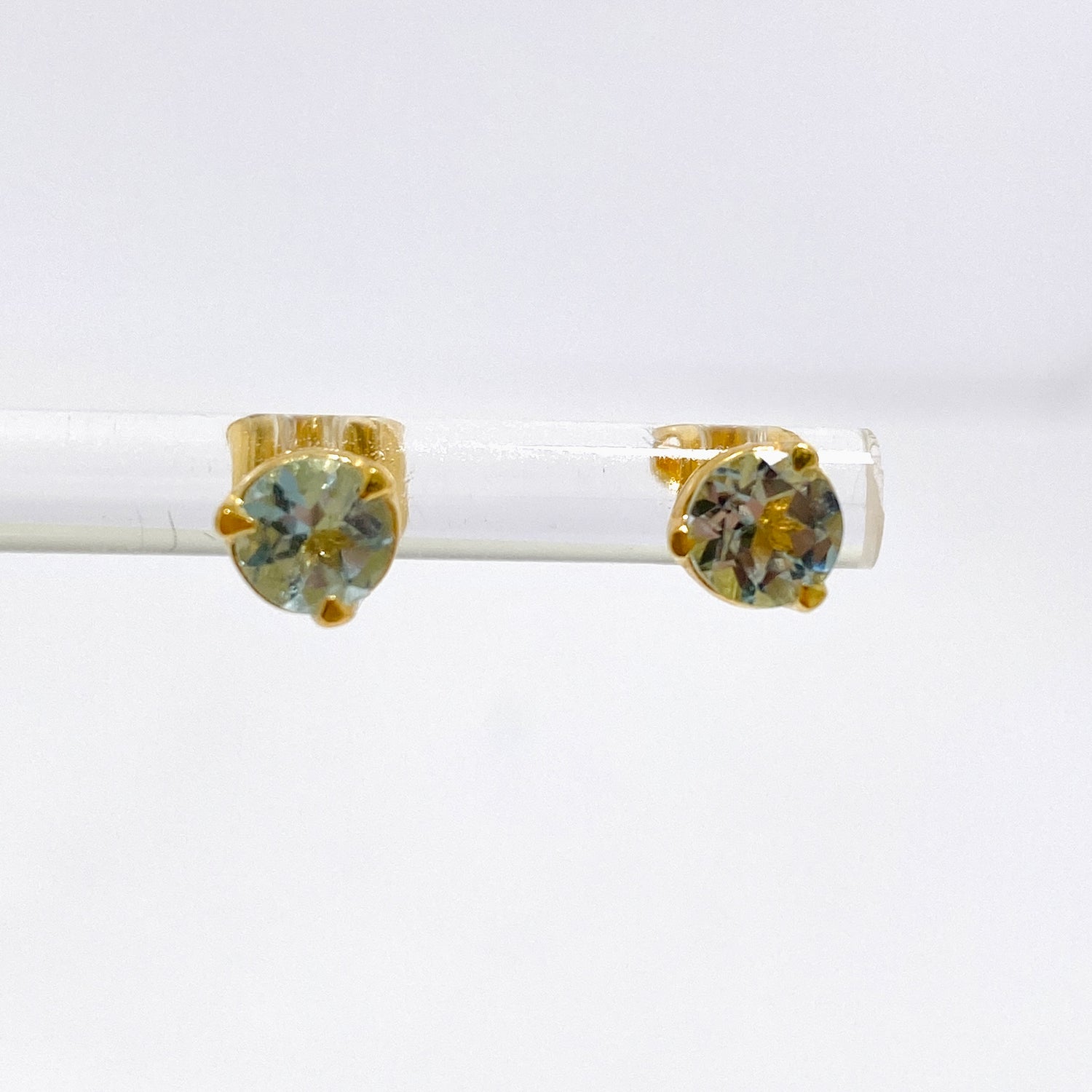 Gemstone Round Faceted 1 micron Gold Plated 3 claw Set Stud Earring 5mm PSE040