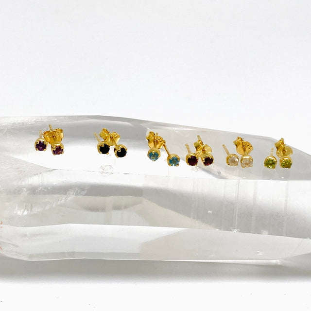 Gemstone Round Faceted 1 micron Gold Plated 4 claw Set Stud Earring 3mm PSE039 - Amethyst is backordered and will ship as soon as it is back in stock.