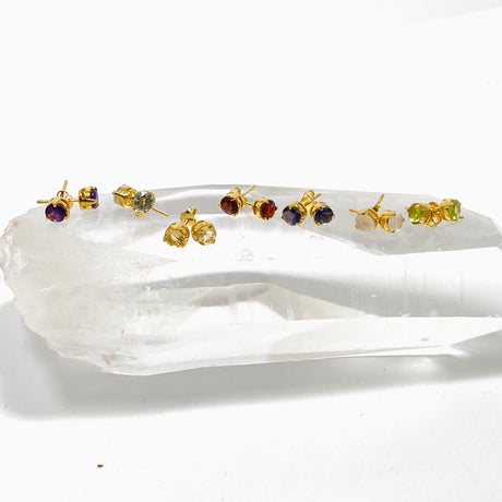 Gemstone Round Faceted 1 micron Gold Plated 3 claw Set Stud Earring 5mm PSE040