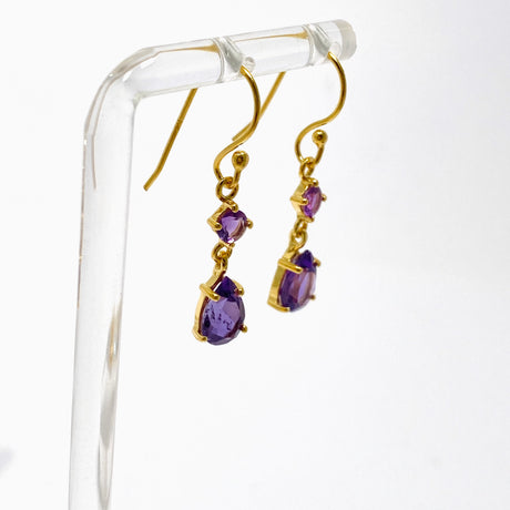 Gemstone Faceted 1 micron Gold Plated Double Drop Earrings PEGJ368
