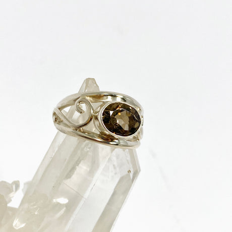 Smokey Quartz Faceted Oval Ring with Filigree Details Size 7.5 BTR-26