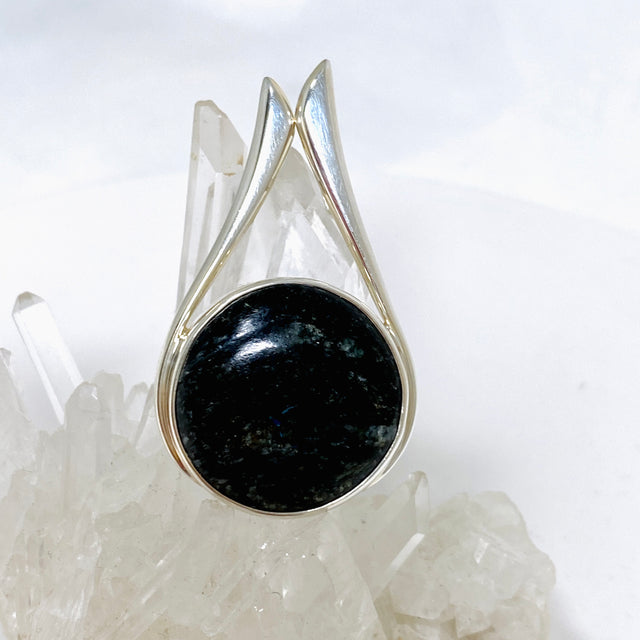 The Nuummite Round Cabochon is expertly crafted and set in sterling silver to create a stunning decorative piece. This gemstone enables the user to access their inner magic, enhancing personal growth.