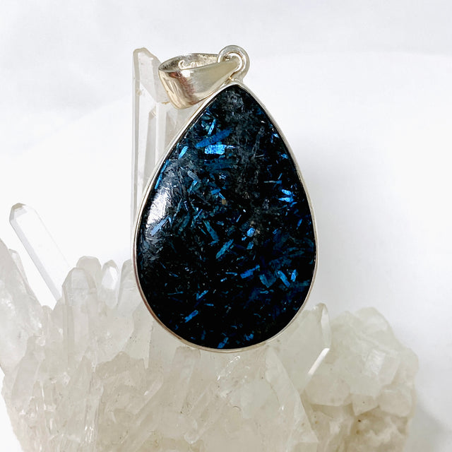 Expertly crafted with a stunning nuummite cabochon, this pendant is set in high-quality sterling silver. Each piece is unique, showcasing the natural beauty of the stone. Elevate any outfit with this one-of-a-kind pendant, while also enjoying the grounding and protective properties of nuummite.