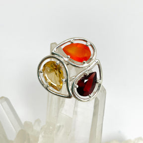 Carnelian, Garnet, Citrine Faceted Multi-stone ring PRGJ887