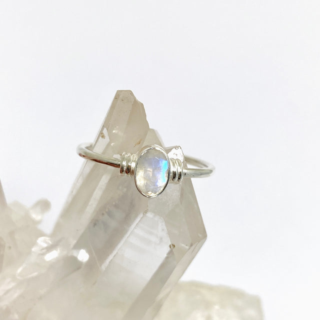 This captivating ring features an oval faceted Moonstone set in sterling silver with a simple decorative design. Known for its calming and intuitive energy, Moonstone is a favourite for those seeking emotional balance and feminine energy. The soft shimmer and elegant setting make this a timeless piece for everyday wear or special occasions.