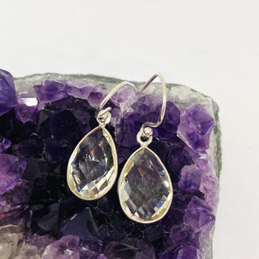 Clear Quartz Teardrop Checkerboard Faceted Earrings PEGJ231