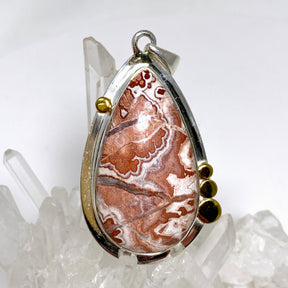 Crazy Lace Rosetta Stone Teardrop Pendant with brass decorative setting KPGJ4569