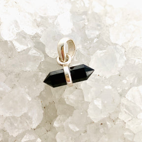 Our Gemstone Double Point Pendant (Horizontal) is available in Black Onyx and Blue Topaz. These petite pendants feature double-ended gemstone points placed horizontally, making them a modern yet timeless piece of jewellery. The grounding and protective properties of Black Onyx combined with the communicative power of Blue Topaz offer a unique energy to the wearer.