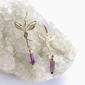 Beautiful angel goddess Gemstone Point Earrings are available in Citrine and Amethyst. These charming earrings feature natural gemstone points, adding a whimsical touch to your jewellery collection. Known for their energetic properties, Citrine and Amethyst will bring light and calmness to the wearer.