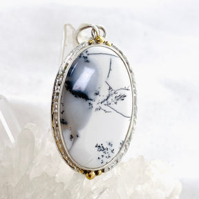 Dendritic Opal Oval Cabochon Pendant in a Decorative Setting KPGJ4676