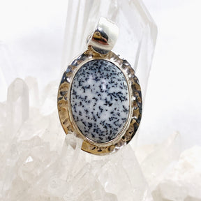 Dendritic Opal Oval Cabochon Pendant in a Hammered Setting KPGJ4675