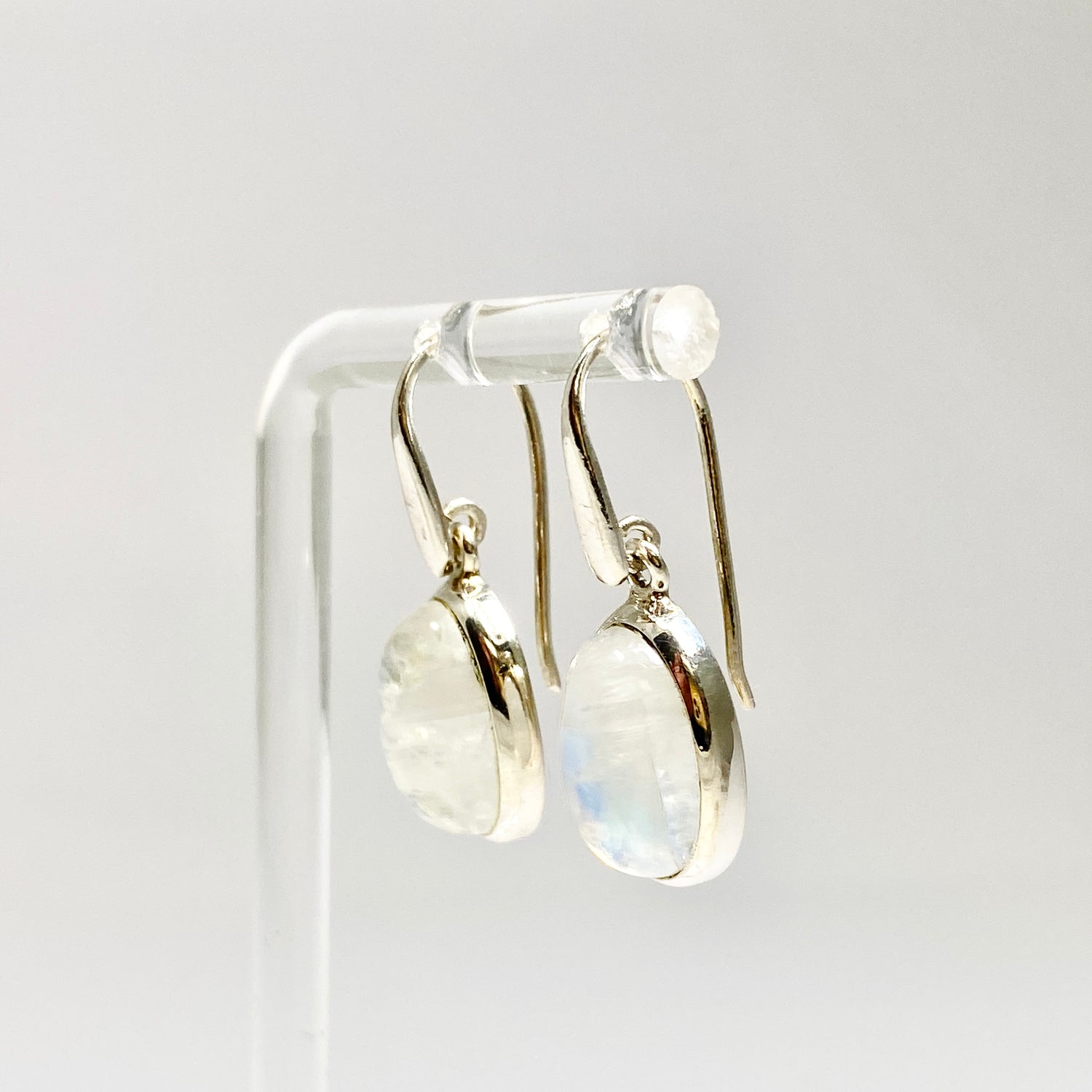 Smooth oval Moonstone cabochons in sterling silver, designed for comfort and style. Moonstone is said to enhance intuition, calm emotions, and bring clarity, making these earrings a meaningful and wearable choice.