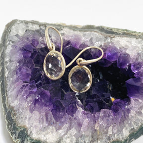 The timeless oval shape paired with checkerboard faceting makes these earrings a standout piece. Wear them to elevate your style while benefiting from the grounding and clarifying properties of Clear Quartz.