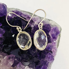Featuring a dynamic checkerboard facet, these Clear Quartz oval earrings shimmer with every move. Known for its energy-amplifying properties, Clear Quartz helps cleanse and balance your aura, making these earrings both beautiful and functional.