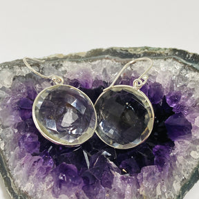 Clear Quartz Round Checkerboard Faceted Earrings PEGJ212