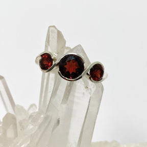 This multi-stone Garnet ring features a cluster of sparkling round faceted stones in sterling silver. Garnet promotes empowerment, motivation, and emotional resilience – a bold piece with beautiful energy.