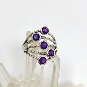 Five sparkling Amethyst stones are set into a polished 925 sterling silver band, creating a simple yet elegant ring perfect for daily wear. Amethyst is loved for its calming energy and spiritual protection — a wonderful choice for enhancing clarity and peace of mind.