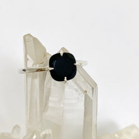 This bold Black Onyx ring in 925 sterling silver features a polished faceted cut in a modern square setting. Black Onyx is known for strength, protection, and grounding energy. Minimalist and strong, this design is also available in other crystal types.