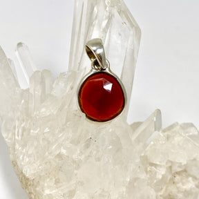 Sterling silver pendant with a freeform garnet. Each piece is unique, showcasing natural variations in colour and shape, perfect for someone who loves standout jewellery.