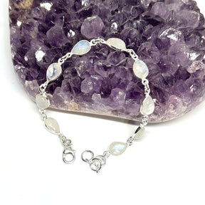 Moonstone cabochon gemstones in 925 silver bezel setting bracelet PBGJ018 - Teardrop is backordered and will ship as soon as it is back in stock.