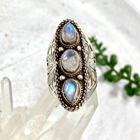 This gorgeous triple Moonstone ring is a part of our exclusive Nature's Magick "Boho Collection".