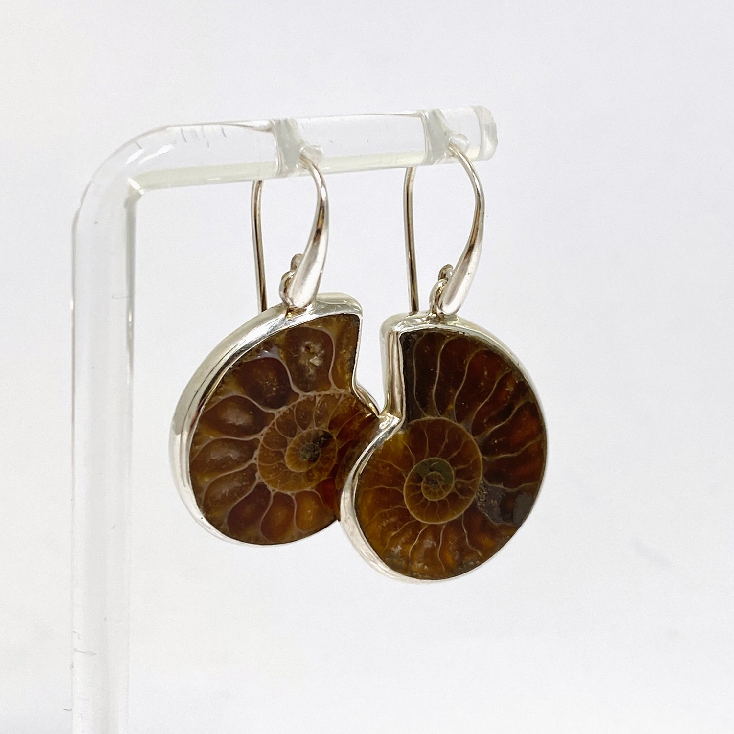 These Ammonite Fossilised Shell Earrings, set in 925 sterling silver, showcase the intricate spiral pattern of ancient marine fossils. Ammonite is associated with life cycles, grounding, and transformation. Each piece displays natural variations in pattern and tone, formed over millions of years.