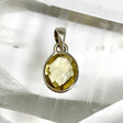 Lemon Quartz pendant in 925 sterling silver, featuring an oval checkerboard cut. Supports clarity, focus, and optimism while reflecting light beautifully—perfect for layering or wearing solo.