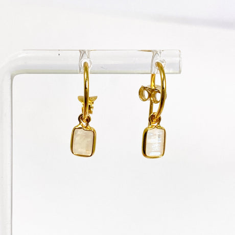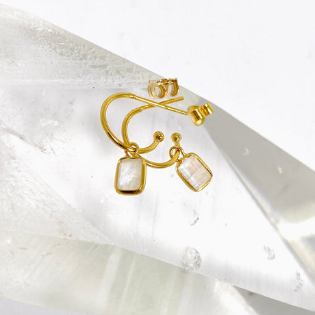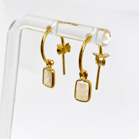Moonstone Rectangular Faceted Gold Plated Half Hoop Earrings SE2720-YG