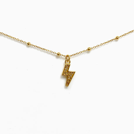 Cubic Zirconia Lightning Bolt Gold Plated Pendant on a Ball Chain 42cm NK548-YG