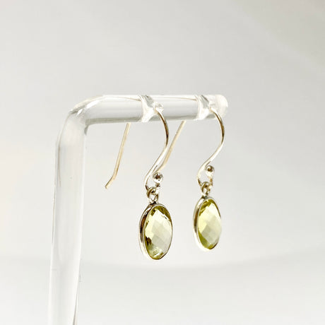 Lemon Quartz Oval Checkerboard Faceted Earrings PEGJ404