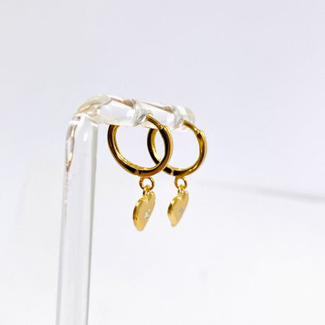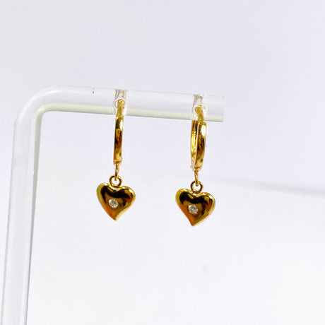 Cubic Zirconia Gold Plated Heart Drop Huggie Earrings SE2717-YG