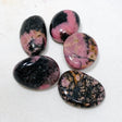 Rhodonite Properties: "Emotional First Aid", Emotional balancing, Compassion, Calms shock and panic, self-love and nurturing, forgiveness, patience, grounds negativity, transmutes anger, healing past wounds of the heart