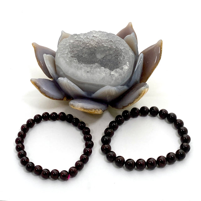 This Garnet bracelet showcases natural, polished 7mm or 8mm round beads with a deep, rich red hue. Known for its association with energy, passion, and vitality, Garnet is a timeless stone valued for its grounding and revitalising properties.