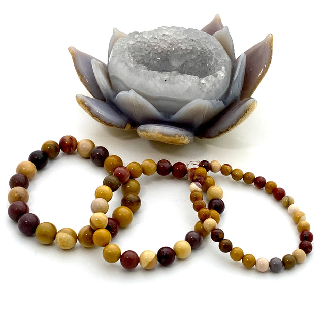 Bring the vibrant, earthy energy of Mookaite with these stunning Stretch Bracelets, available in 6mm, 8mm, and 10mm bead sizes. Mookaite, known for its rich blend of warm reds, yellows, and browns, is a stone of grounding and stability, encouraging inner strength, resilience, and connection to the earth. Whether you prefer the subtle elegance of the 6mm size, the balanced look of the 8mm, or the bold presence of the 10mm, these bracelets are designed for comfort and style, making them perfect for daily wear or as a thoughtful gift. Let Mookaite help you stay grounded while adding a touch of natural beauty to your wardrobe.