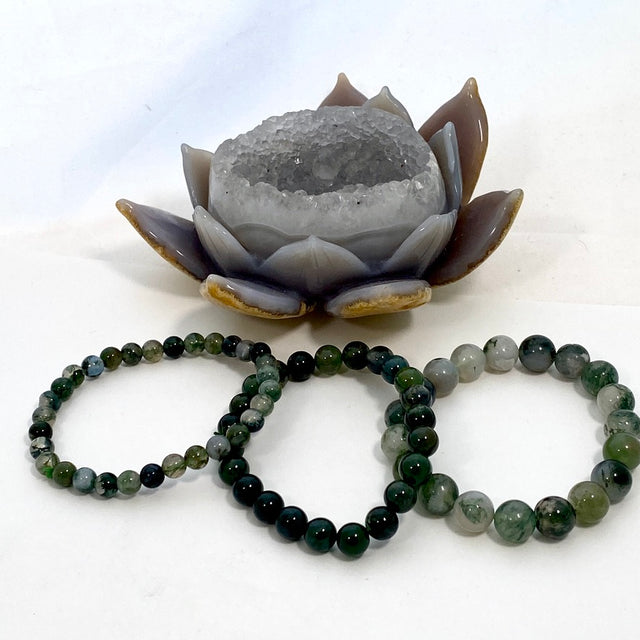 These bracelets are made of moss agate, a natural stone known for its calming properties and beautiful colour variations. With a variety of bead sizes available, you can find the perfect fit for almost any wrist.