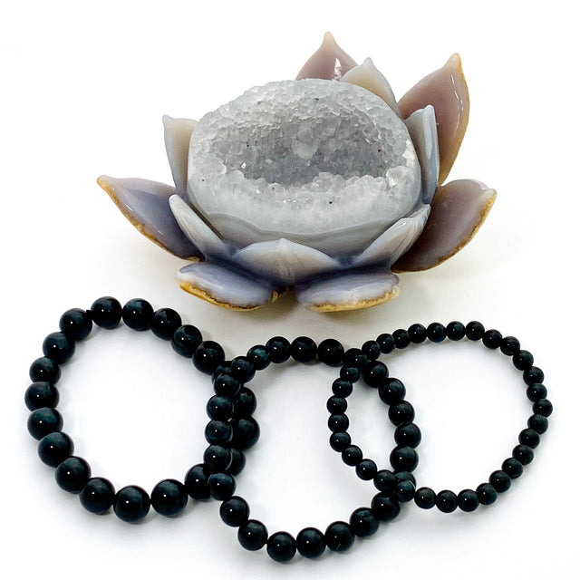 Our Blue Tiger's Eye bracelets are a sleek, modern take on a classic gemstone. Available in 6mm, 8mm, and 10mm bead sizes, they feature natural Blue Tiger's Eye stones with a deep, iridescent sheen.