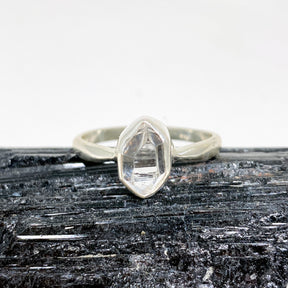 Handcrafted with sterling silver, this small Herkimer Diamond Ring perfectly showcases its remarkable natural beauty.