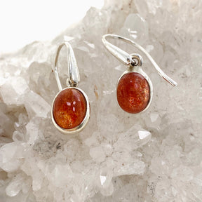 These Sunstone oval cabochon earrings are set in sterling silver, showcasing the stone's warm, golden and orange hues. Sunstone is known for its energising properties, often used to enhance vitality, confidence, and joy. These earrings add a touch of elegance and positive energy to any outfit, making them a perfect choice for daily wear or special occasions.
