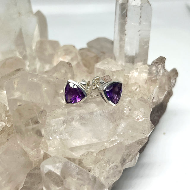 Triangular Faceted Gemstone Bezel Set Stud Earrings PSE015