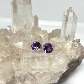 Round Faceted Gemstone 3-claw Set Stud Earring 7mm PSE006 - Amethyst is backordered and will ship as soon as it is back in stock.