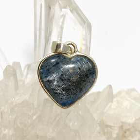 A rare Blue Kyanite heart pendant, perfect for balancing the heart and throat chakras. This piece encourages open communication and deep emotional healing.